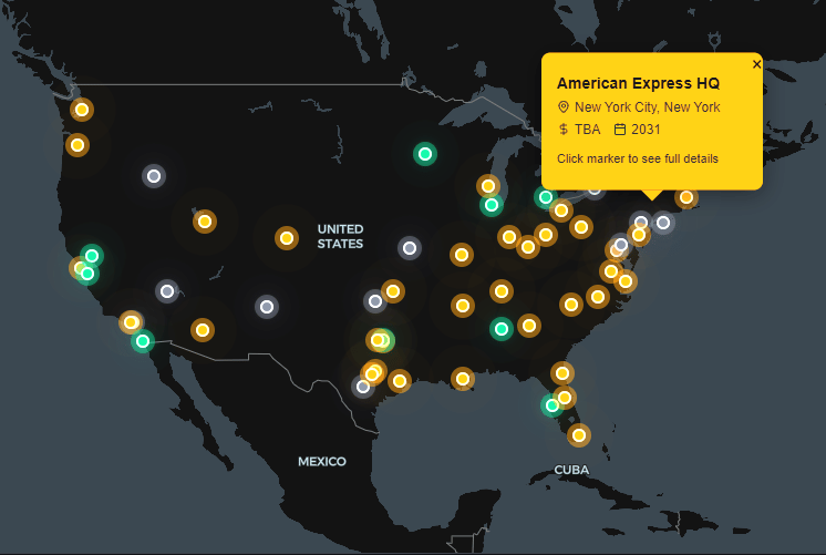A live interactive map covering construction projects across the U.S.
