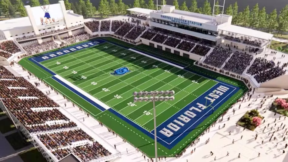 The University of West Florida officially broke ground on February 11, 2026, on Darrell Gooden Stadium, a new football and multi-use events facility on its Pensacola campus.